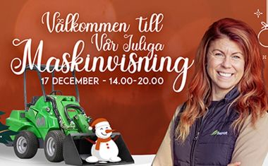 En eftermiddag fylld med inspirerande maskiner, exklusiva erbjudanden och härlig julstämning väntar dig hos oss! Passa dessutom på att ta del av verkstadens specialerbjudanden och diskutera service och reparationer med våra kunniga experter. Vi bjuder på förtäring, julmiljö och trevligt sällskap. Vi erbjuder också unika rabatter på utvalda redskap och tillbehör, så det finns gott om möjligheter att göra klipp inför vinterns arbete.